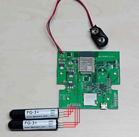 Two FG-3+ sensors connect to the MAG-BOARD.