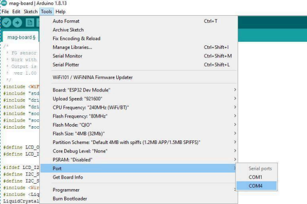 1. Open the FG Sensors gradiometer source code in Arduino IDE