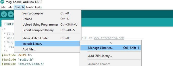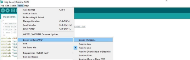 If you are using the standard FG Sensors firmware and do not need to modify the code, you can skip this section. If you want to customize the software, you can program the MAG-BOARD using Arduino IDE and the open-source code provided by FG Sensors.