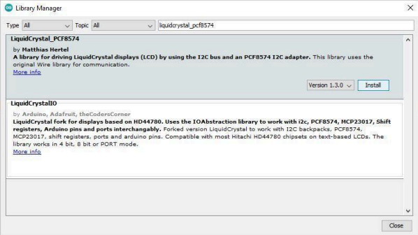 Arduino IDE Install LiquidCrystal PCF8574 Library